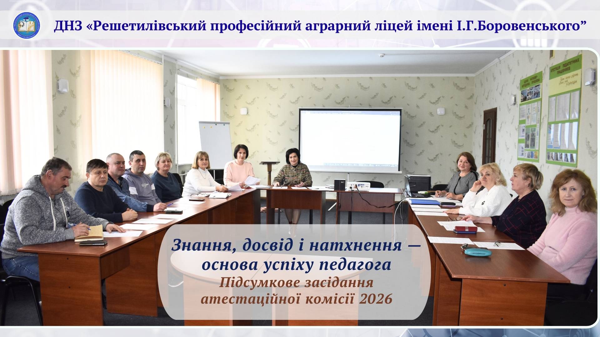 У ДНЗ «Решетилівський професійний аграрний ліцей імені І.Г.Боровенського» підбито підсумки атестації педагогічних працівників у 2025–2026 навчальному році.У ході засідання розглянуто результати професійної діяльності педагогів, рівень їхнього професійного зростання, підвищення кваліфікації та практичний досвід роботи. За результатами роботи атестаційної комісії ухвалено рішення щодо відповідності займаним посадам, присвоєння та підтвердження кваліфікаційних категорій, педагогічних звань і встановлення тарифних […]