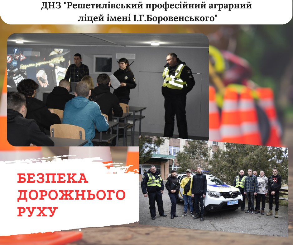 У Решетилівському професійному аграрному ліцеї імені І.Г.Боровенського відбувся виховний захід «Будь обережним на дорозі», який організував викладач предмета «Правила дорожнього руху» Сергій Вовк.Про небезпеки, які можуть очікувати пішохода на дорозі, до кого звернутися в разі необхідності за допомогою, основні дорожні знаки, які повинні знати пішоходи – про ці та багато інших питань розповідали учням запрошені на захід працівники поліції СПД №1 ВП №2 ПРУП. На початку зустрічі інспектор ювенальної превенції Маргарита Козир спільно з поліцейським з РПП Юрієм Деркачем розповіли ліцеїстам про найбільш розповсюджені причини дорожньо – транспортних аварій, про правила переходу дороги, а також про відповідальність в разі порушення Правил дорожнього руху. Також, з учасниками заходу провели міні-вікторину, щоб перевірити наскільки добре вони знають значення дорожніх знаків. При цьому учні відповідали швидко та правильно, чим неабияк потішили правоохоронців.