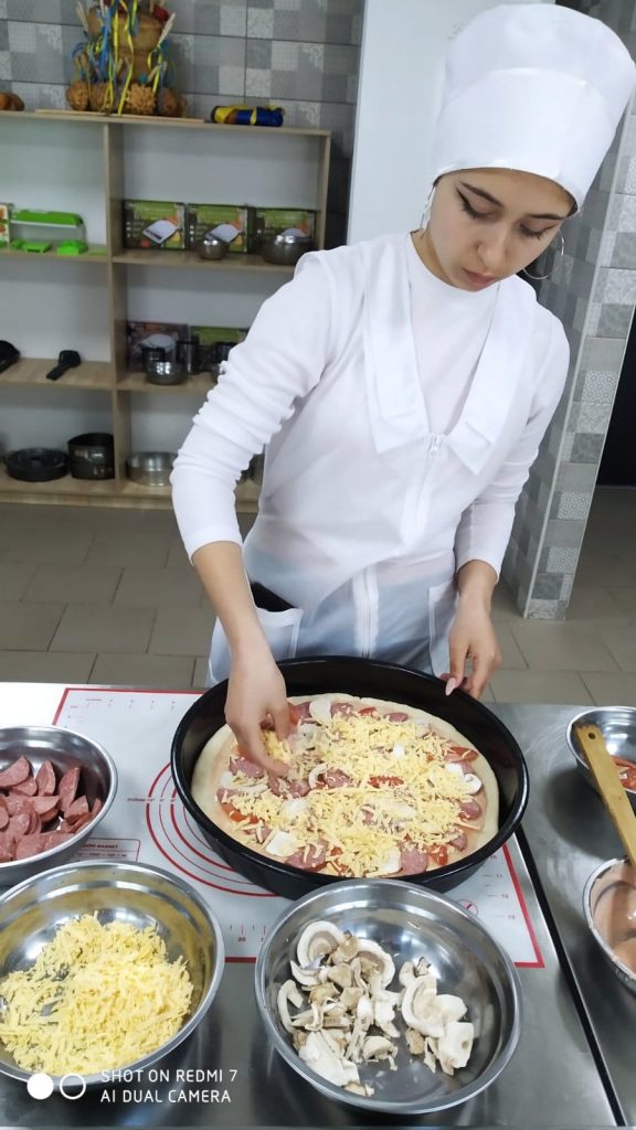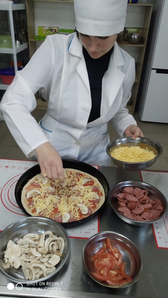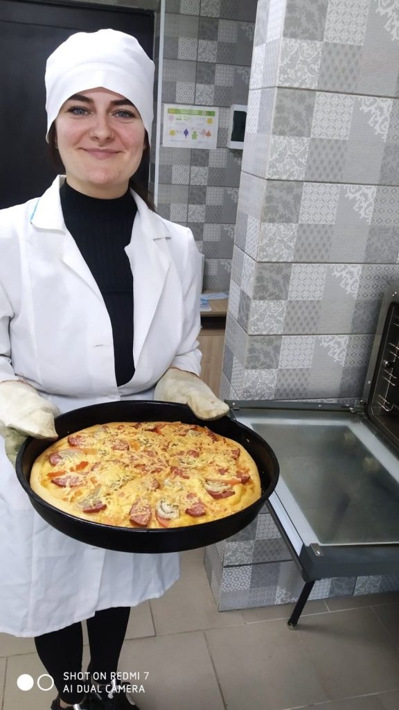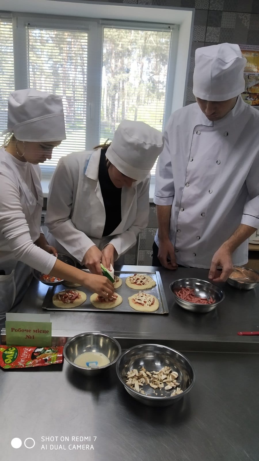 На виробничому навчанні з пекарської справи у пекарській лабораторії ліцею майстер виробничого навчання І.В.Овраменко і третьокурсники- пекарі підготовляли компоненти сировини, замішували тісто, формували та випікали піци з різними начинками. В кінці заняття відбулася дегустація, яка показала, що всі спечені пици відповідають вимогам якості.